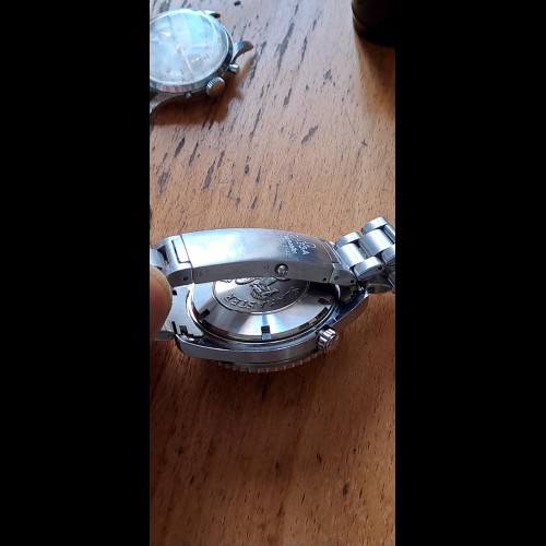 Acier inoxydable d'origine, fond vissé gravé d'Hippocampe, lunette deux tons.