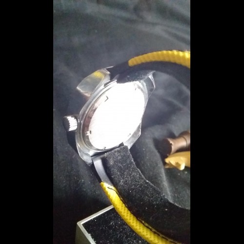 Boitier brossé chromé. Cadran  couleur champagne avec trotteuse orange, style rallye. .