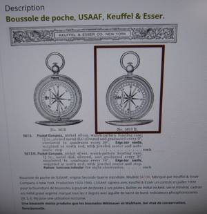 Production 1920-1940. L’USAAF signera avec Keuffel & Esser un contrat en juillet 1939 pour la fourniture de boussoles à gousset destinées à ses pilotes.