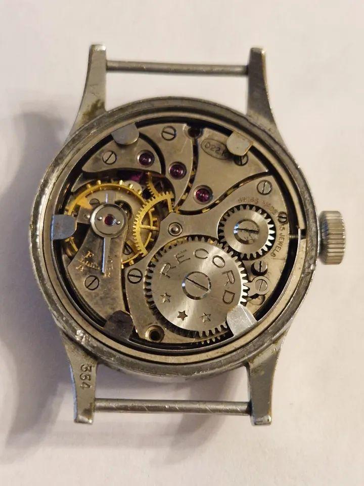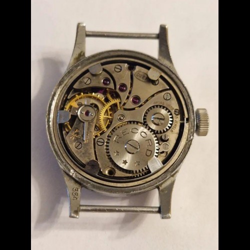 chiffres luminescents rehaussés au Tritum selon les spécifications du ministère de la défense britannique et du cahier des charges Military Watch WWII, Cette montre fabriquée par Record Company en 1943 offre une résistance à la poussière et aux projections d'eau. Doté d'un mouvement mécanique suisse de marque ETA et de pompes fixes afin de ne pas la perdre en opérations, cette montre utilisée par les premiers régiments parachutistes (airborne) et également dans la Royal Navy (avec des marquages de dotations différents), constitue le point d'entrée de toute collection de montres militaires vintage.
