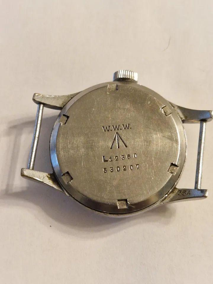 Le marquage W.W.W. au dos est une appellation du ministère de la défense britannique répertoriant l'objet comme étant une "montre de poignet résistante aux projections d'eau" (Watch Wrist Waterproof) Cette série de douze montres de marque différentes ont la caractéristique commune de disposer d'un cadran noir et d'aiguilles horaires rehaussées Radium, remplacé ensuite par du Tritium, d'une couronne de remontoir sur dimensionnée, de barres de fixation du bracelet soudées au boitier, et d'avoir un fond de boitier vissé et ornée de six entailles afin d'ouvrir le boitier. les marquages d'affectations et numéros de série sont disposés sous le Marquage "WWW" et le "Broad Arrow" un sigle héraldique en forme de flèche qui signale l'appartenance de cet objet à la couronne britannique et spécifiquement lorsque la pointe de flèche est en direction du haut de l'objet : d'appartenance à l'Armée britannique (ou des forces militaires du Commonwealth).