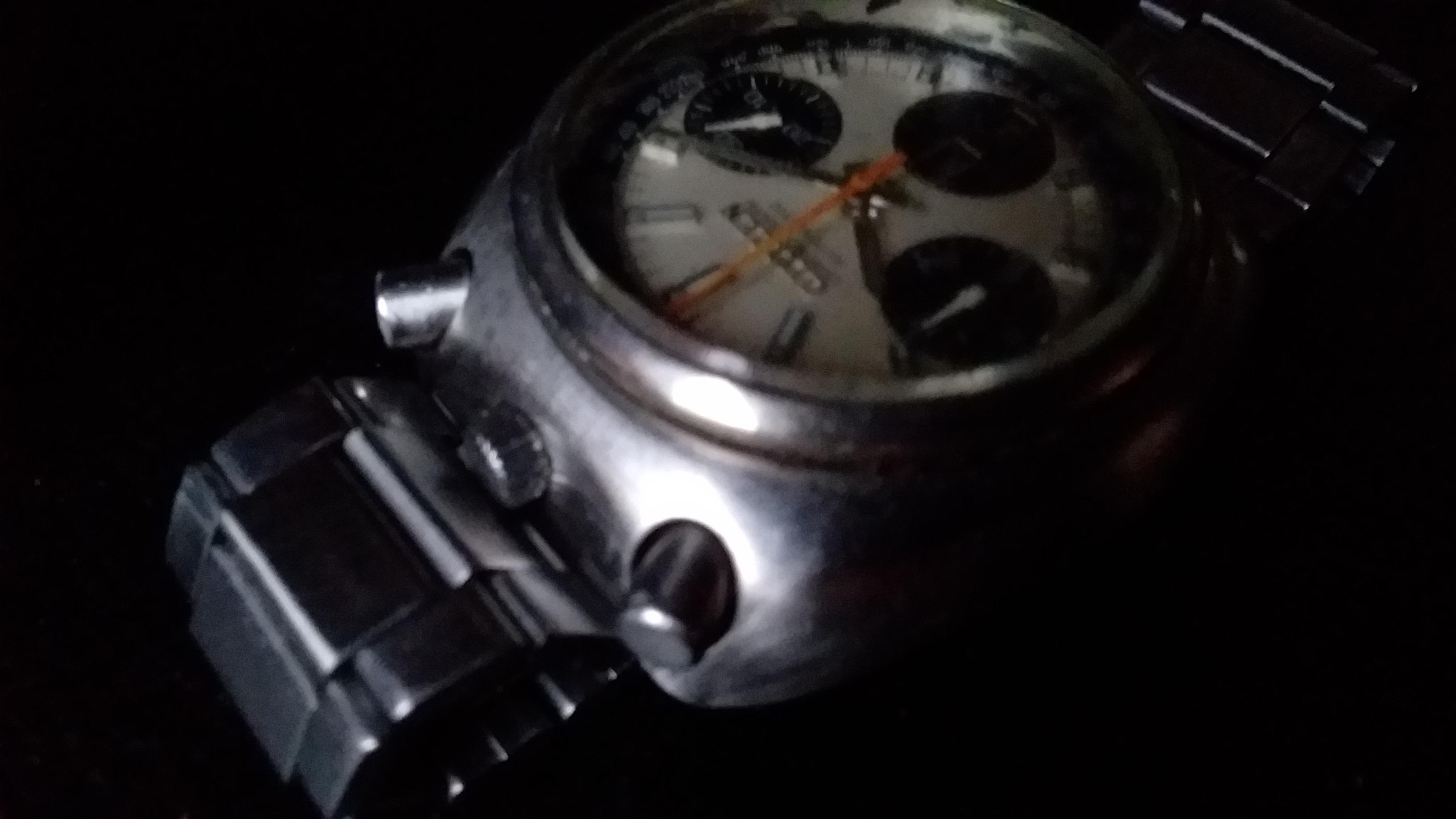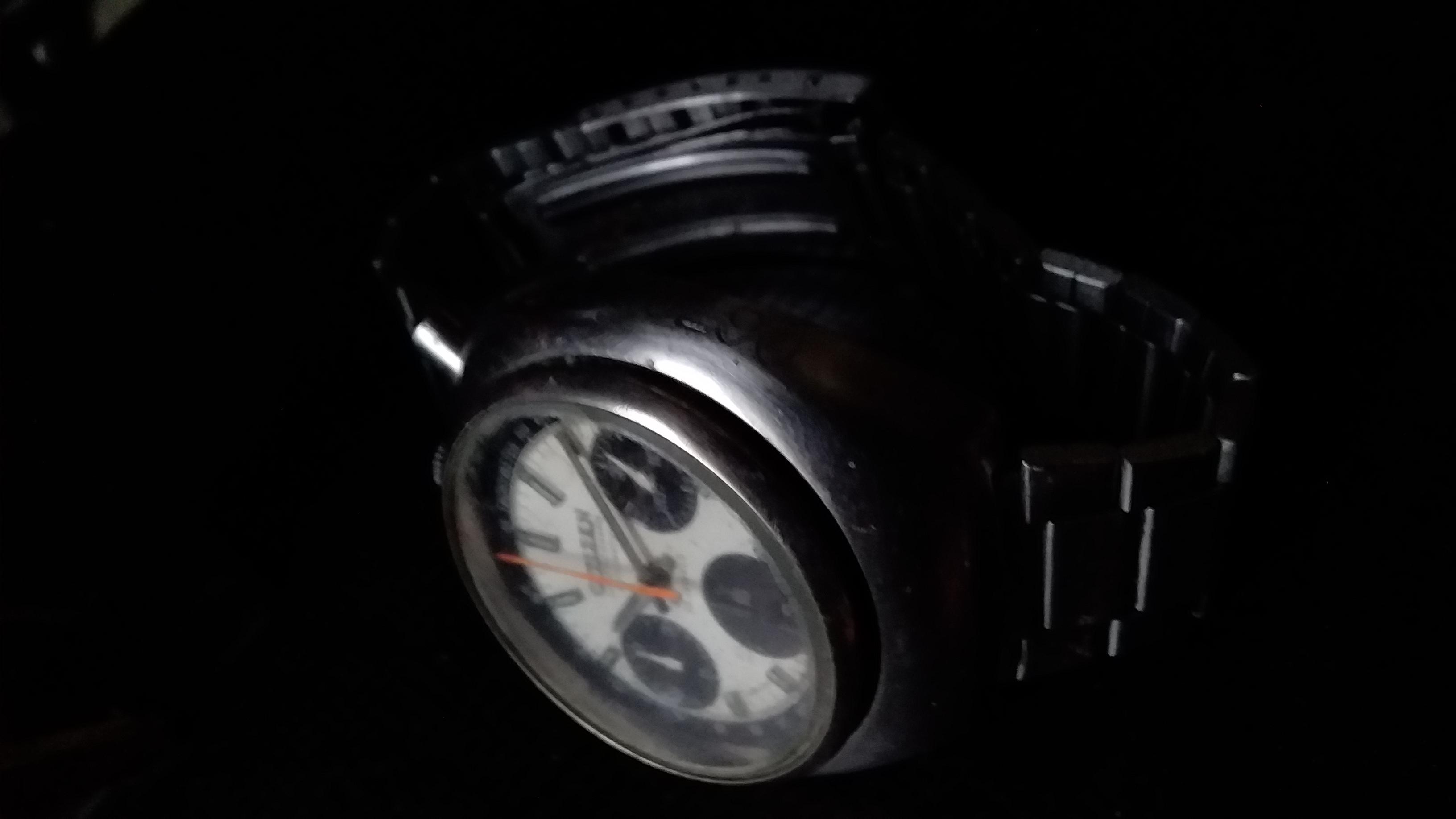 Les aiguilles des sous-compteurs du chronographe sont peintes en blanc, très  blanc par rapport au cadran qui est complètement noir. Panda oblige, mais la lisibilité du chronographe est nickel.