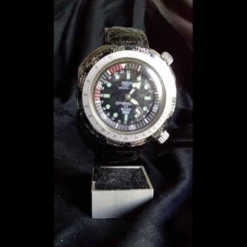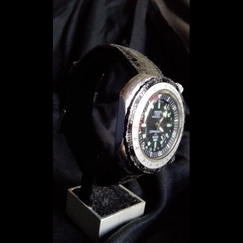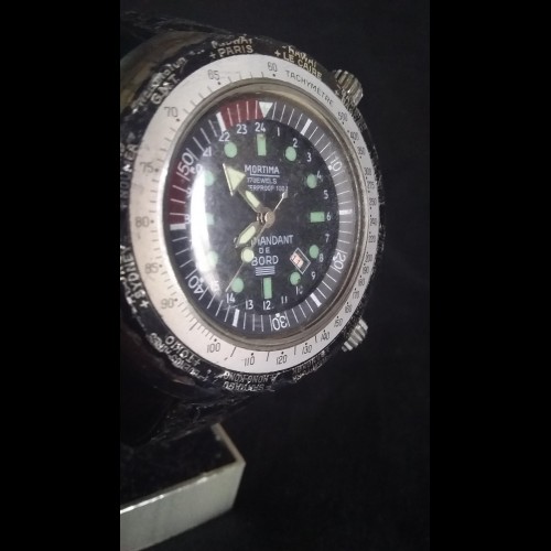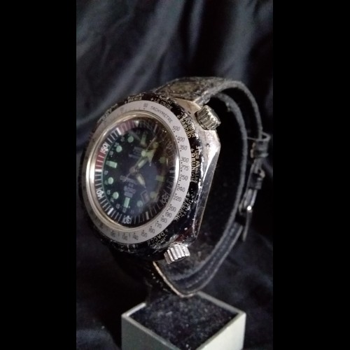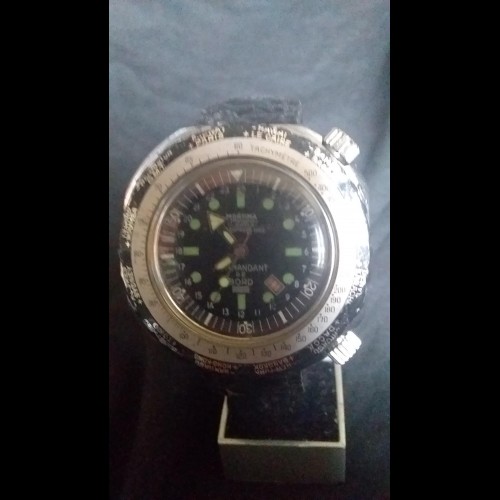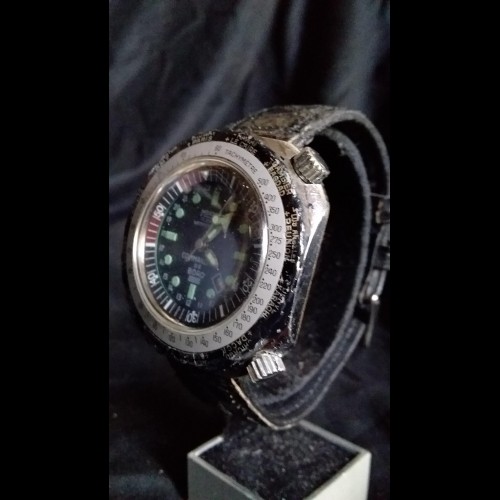Ce modèle, étanche à 50 m, lancé en 1970, dispose d’une lunette tournante sous le verre et d’une deuxième lunette tournante externe, plongée ou GMT.
