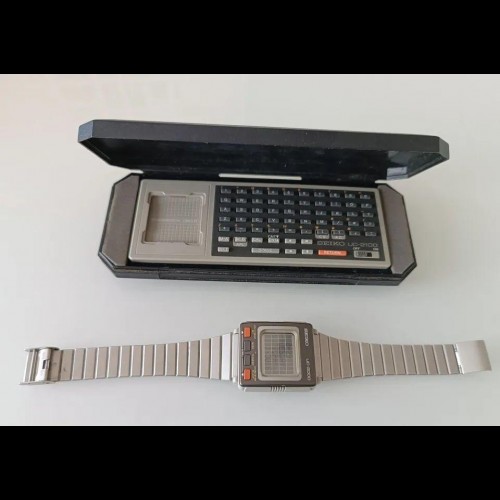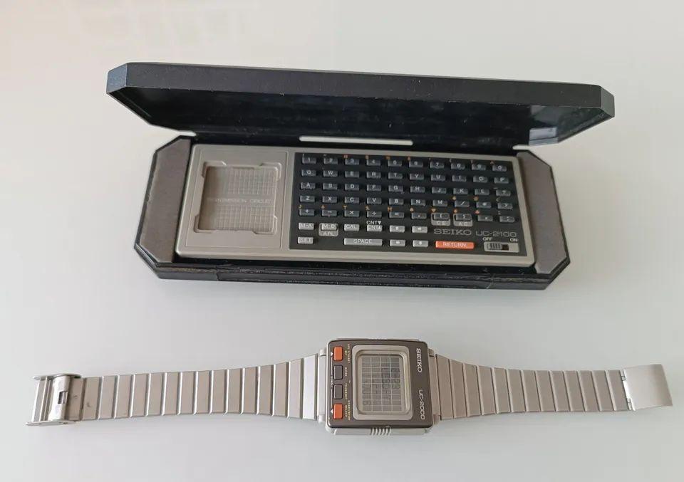 Avant les montres intelligentes, il y avait l'ordinateur de poignet Seiko UC-2000. Cet ordinateur portable peut paraître avancé, mais il n'était capable que de stocker 2 K de données, de donner l'heure et d'exécuter des fonctions de calculatrice. Le gadget a fait ses débuts en 1984 et s'est vendu au détail 300 $ (689,04 $ en dollars d'aujourd'hui). Ce que vous regardez ci-dessus, c'est l'UC-2000 monté dans son clavier.