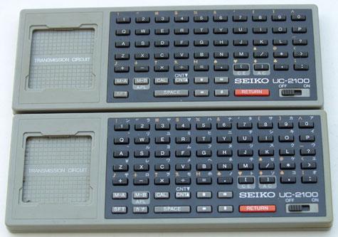 manière ou d'une autre, les données ont été transférées du clavier sur l'écran de la montre via des aimants ou de la magie (ou un circuit d'induction pour ceux d'entre vous qui connaissent vos oignons).Vous avez pu taper des notes et, je crois, même taper des programmes BASIC.  Ils UC-2100 avaient un clavier (très) micro QWERTY avec quelques autres fonctions, plus un interrupteur d'alimentation.
