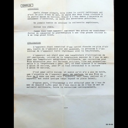 - Référence: Spirotechnique Profondimètre 80 mètres