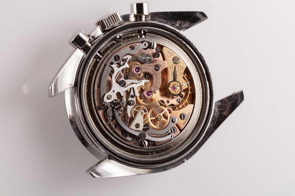 Chose curieuse à souligner ici, la Speedmaster utilisait la propre version d'Omega du mouvement Lemania 2310, qui est le calibre 321.