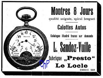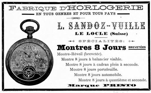 L. Sandoz-Vuille commercialisait des montres similaires sous la marque Presto en 1913.