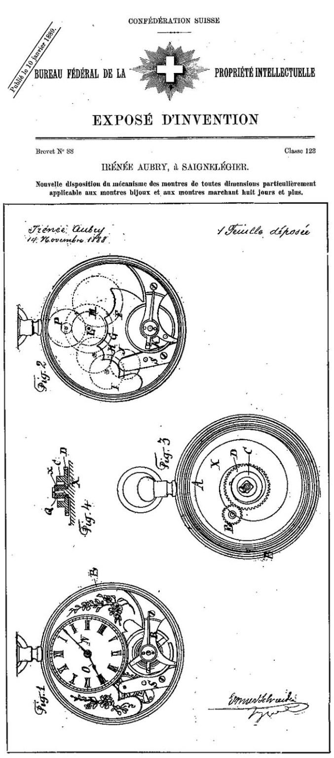 Le brevet, délivré le 10 janvier 1889, est l'un des premiers brevets suisses, portant le numéro 88.