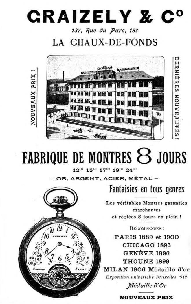 L'entreprise de Graizely, Graizely & Co., s'est développée rapidement et s'est concentrée sur la production de masse dans un bâtiment emblématique de la rue du Parc 137 à La Chaux-de-Fonds.