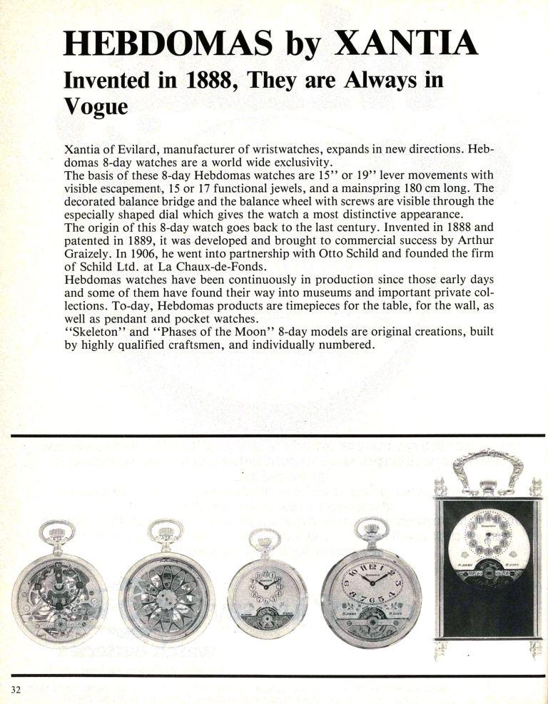 En 1982, Europa Star a publié un article d'une page entière annonçant que Xantia était désormais le producteur de la montre Hebdomas 8 jours.