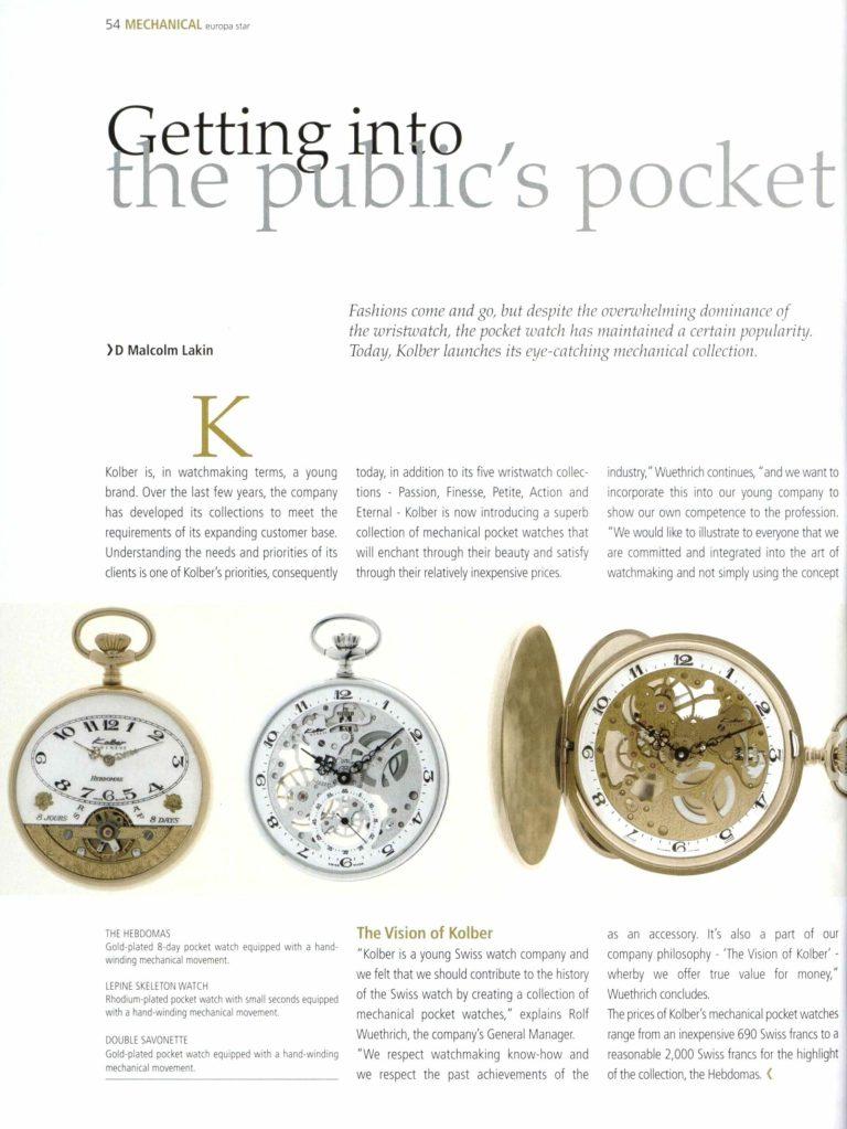 La montre de poche familière Hebdomas est réapparue en 2002 dans la ligne de Kolber