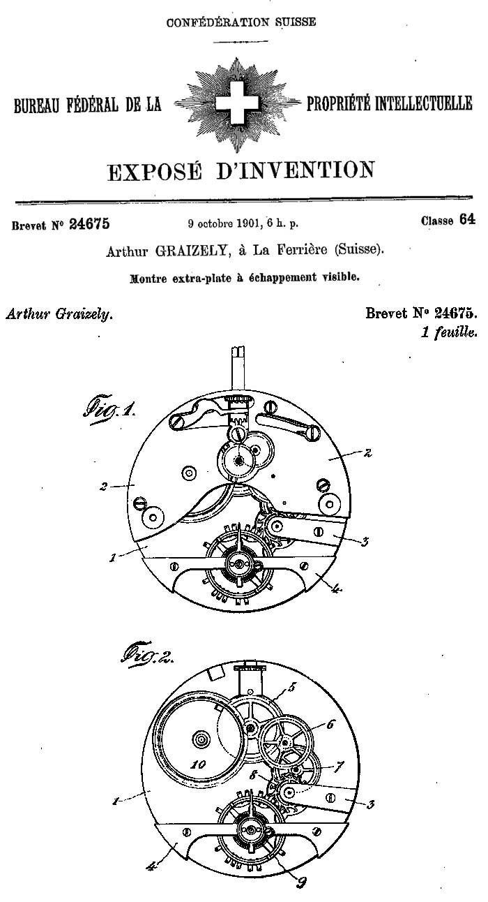 Graizely a été un pionnier des montres-bracelets, montant son mouvement de montre de poche à 12 ou 14 lignes dans un bracelet.