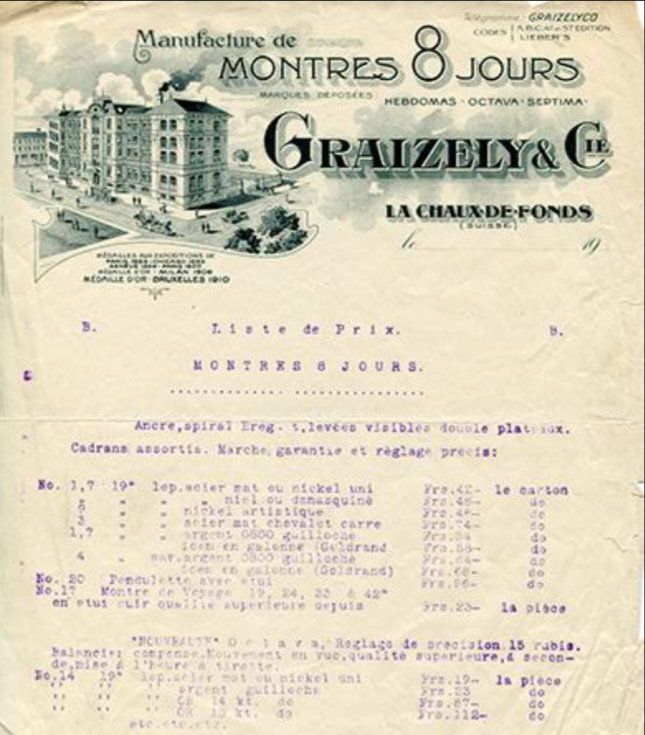 La première mention de l'entreprise se trouve dans le numéro du 24 avril 1889 de La Fédération Horlogère , suggérant qu'Aubry aurait en effet fait appel aux frères Graizely établis pour l'aider à financer son invention.