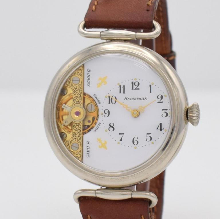 Les chiffres et les aiguilles différaient souvent la même année, et une variété de fleurs se trouvent imprimées dans l'espace blanc du cadran. Il est difficile de lire beaucoup dans le nom de la marque non plus, puisque "Hebdomas" est devenu une sorte de terme générique pour la montre.