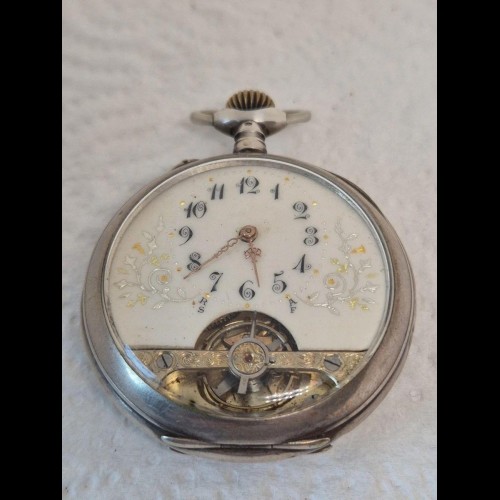 Montre Gousset Ancienne en Argent 0,800 Spirale Breguet Fonctionne.