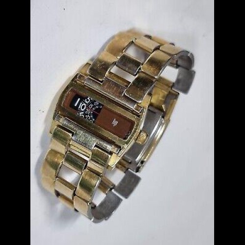 Un repère rouge situé horizontalement facilite la lecture. Cinq modèles possèdent un minuscule verre situé à gauche de la boîte et, à droite, le sigle LIP est gravé sur une petite plaque amovible qu’un client peut faire graver à ses initiales.
