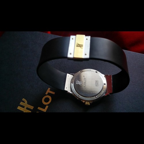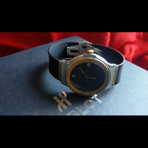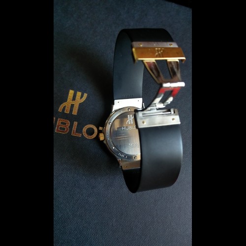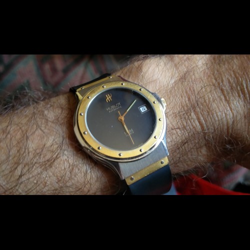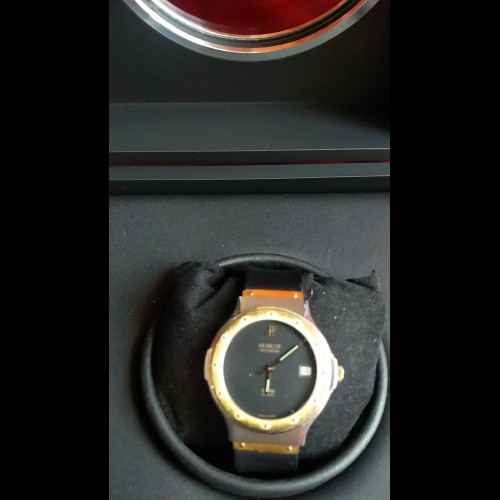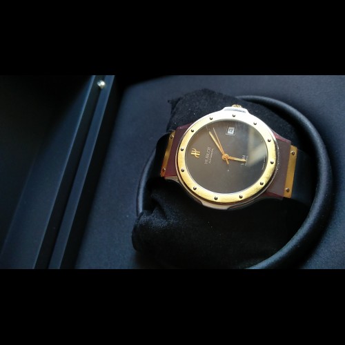 La Hublot MDM Geneve (réf. 1390) est un des premiers garde-temps de Hublot. Le modèle à trois aiguilles dispose d’un cadran noir, d’un guichet de la date à 3 h et d’un mouvement à quartz. Cette MDM Genève est un investissement intéressant, surtout pour les collectionneurs de montres récentes. Vous pouvez acheter cette pièce vintage pour 1 010 €.
